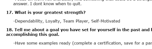 I was looking at some sample job interview questions online, and in the process found a list with “suggested answers”. I love that they tell you what you should say your greatest strength is …