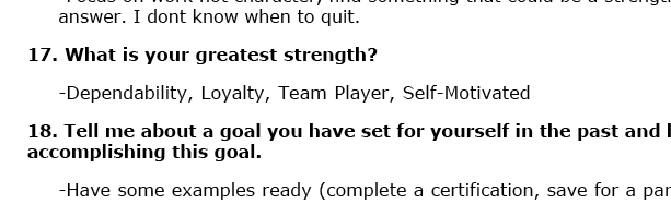 I was looking at some sample job interview questions online, and in the process found a list with “suggested answers”. I love that they tell you what you should say your greatest strength is …